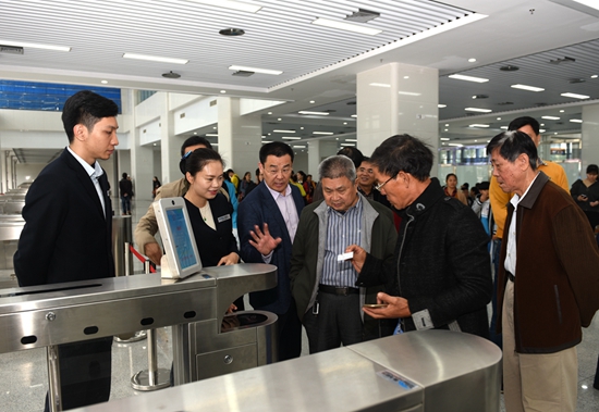 座談會(huì)開始之前,姜宏濤、劉海榮、王修奮等陪同老干部參觀新落成的海口汽車總站,姜宏濤董事長(zhǎng)親自當(dāng)起了“向?qū)?rdquo;,向老干部介紹海口汽車總站現(xiàn)代化的自助售檢系統(tǒng)、智能化調(diào)度系統(tǒng)、信息發(fā)布系統(tǒng)、安防監(jiān)控系統(tǒng)以及先進(jìn)的人臉識(shí)別、車牌識(shí)別,車輛自動(dòng)檢測(cè)、自動(dòng)報(bào)班等功能。老干部們被眼前一座現(xiàn)代化、智能化、生態(tài)型道路客運(yùn)樞紐站所震撼,對(duì)公司近年來發(fā)展成果給予點(diǎn)贊。